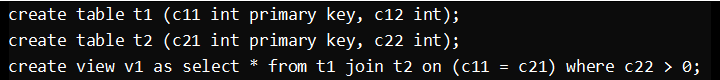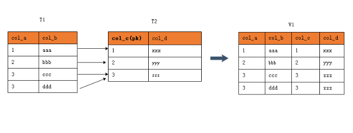 两个表的连接列都不是主键:t1和t2组成视图v1且都不存在主键,则对于视图而言无键保留表。
