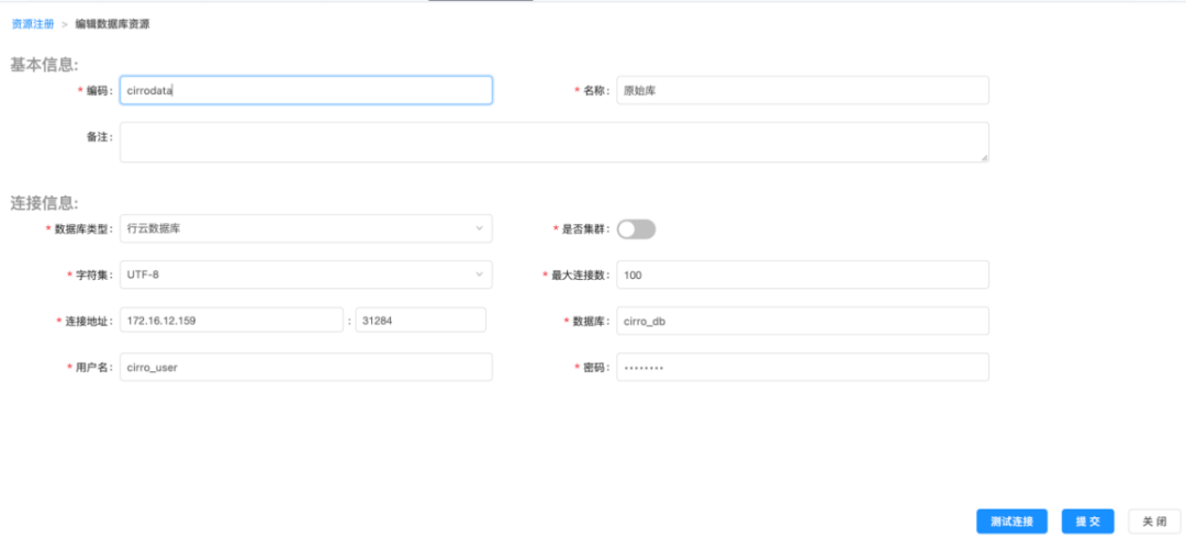 将生产库备份完成之后,将备份库中需要连接的资源信息添加至平台,实现工具与原有数据资源的对接,以此通过数据治理平台来进行对资源的相关操作。