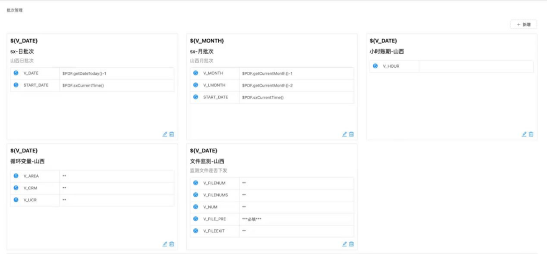 通过数据分析,从原存储过程中抽取声明变量,确定周期类型、规范变量名称,根据分析结果在平台上管理批次模版,便于用户实现特定的需求,在每次执行流程时标记批次编码。