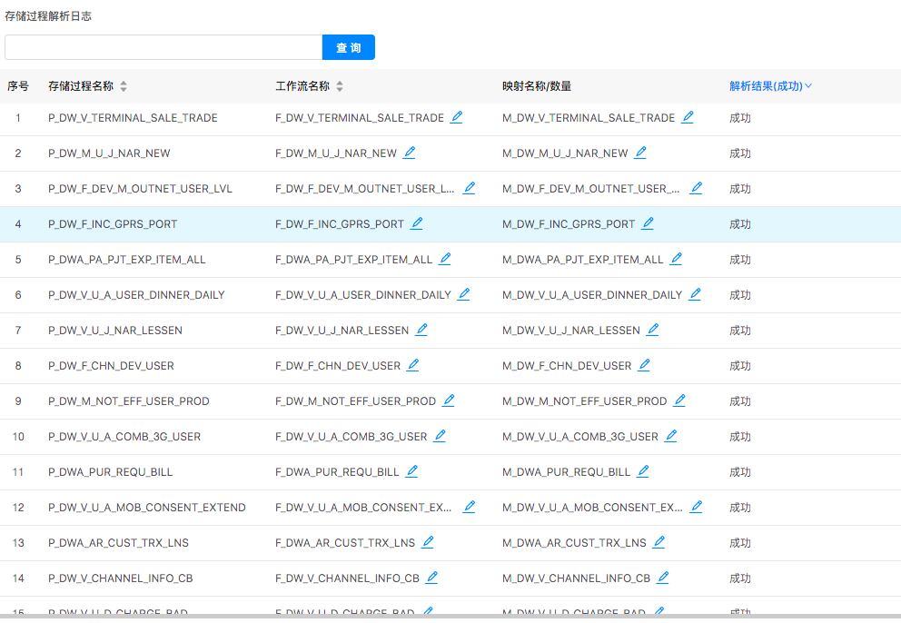 解析任务结束后,在数据慧治平台中查看脚本解析日志,核对解析任务生成的映射、工作流及流程依赖关系是否与脚本保持一致。