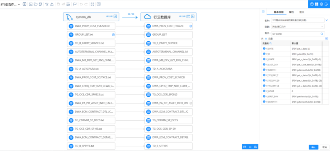 东方国信DIG数据慧治平台将原有数据仓库的存储过程、SHEEL脚本通过云化ETL迁移工具自动转化为图形化的统一的数据加工逻辑,根据数据流向自动解析成为加工任务事件,形成数据加工流程,极大降低了现有数据仓库迁移时间和人力成本。迁移后数据生产加工时长显著缩短,充分保障数据时效性。