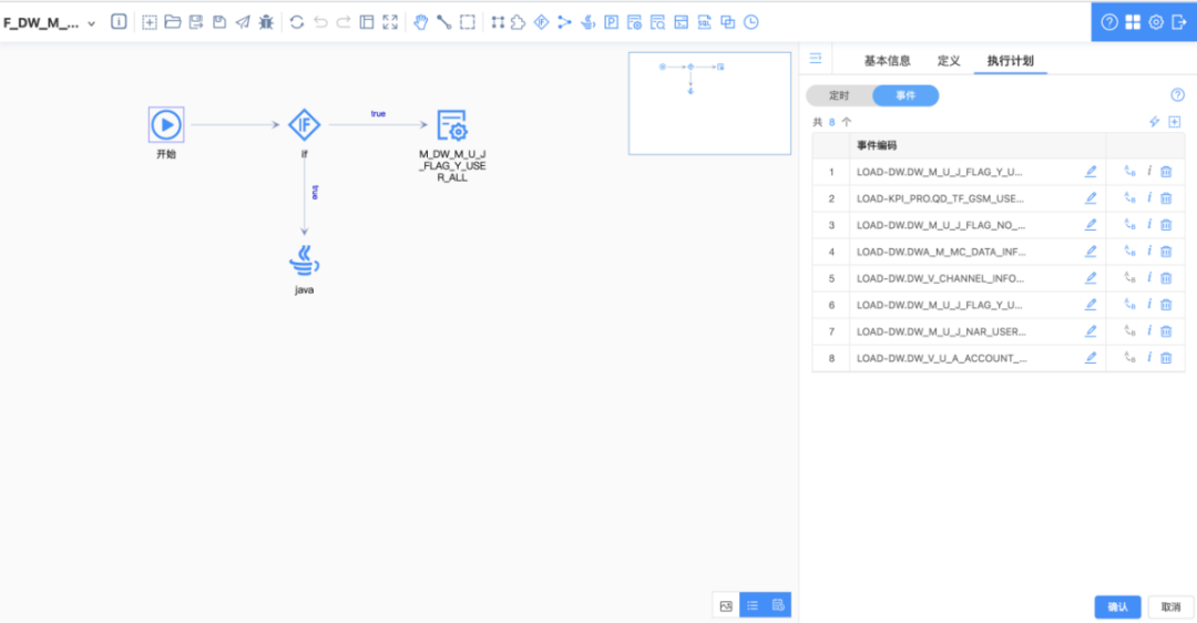 模拟真实环境的数据处理流程,调整定时启动的时间,测试事件触发调度能否顺利运行,验证脚本解析得到的流程节点逻辑是否正确。测试执行时没有数据流动,只验证流程本身。