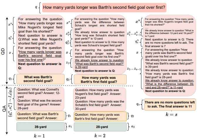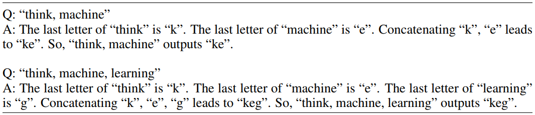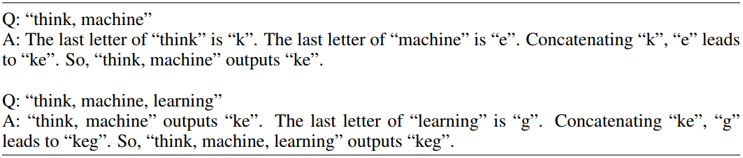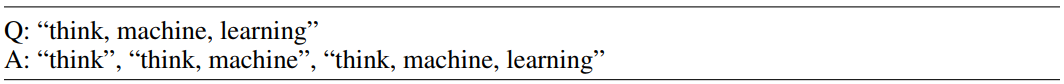 再逐步解决每个子序列最后一个字母的连接问题,并且在解决更复杂的问题时,会根据前序简单问题的答案(如已知“think, machine” outputs “ke”)得到后序问题的结果。