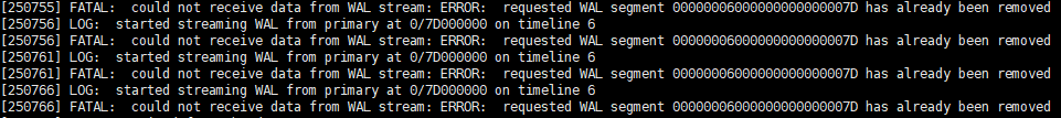 提示有WAL日志未从主端同步过来
