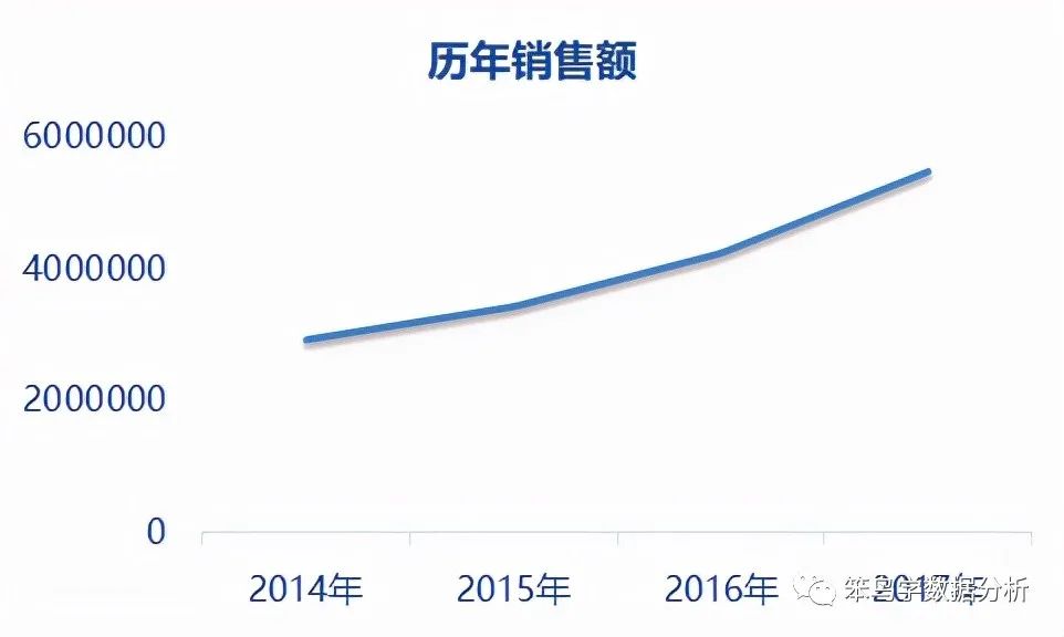 通过对比公司历年的销售额,可以清楚地看到销售呈逐年上升的趋势,这是基于时间的对比分析。