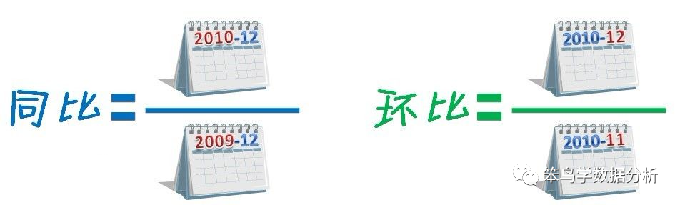 2、基于时间的对比分析中有两个常用的指标:同比和环比。