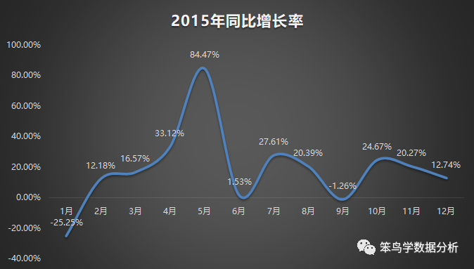 至此,就完成了同比的计算,当然,还可以将同比增长率绘制成折线图,使数据更加直观,如下图所示。