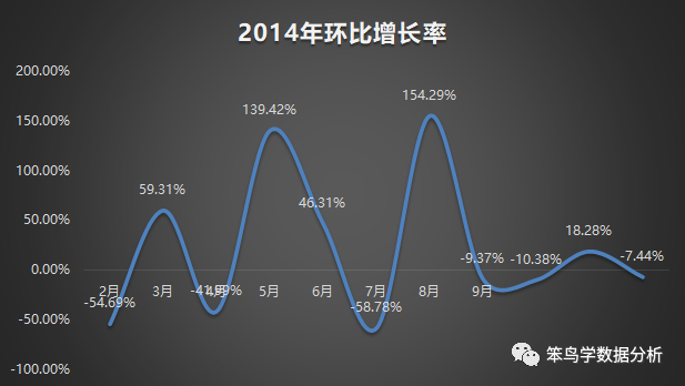 至此,就完成了环比的计算,当然,还可以将环比增长率绘制成折线图,使数据更加直观,如下图所示。