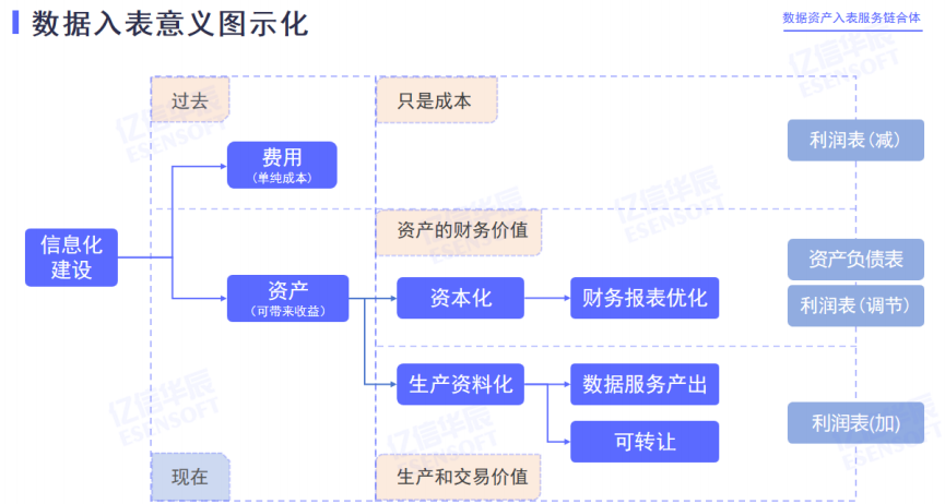 但是现在,或者说在2024年1月1日开始以后,企业的信息化建设可以以成本法方式进行入表,信息化建设本身可以转化为资产。这意味它不仅具备了这个资产的财务价值,还具有了生产和交易价值。