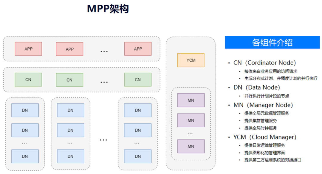 崖山数据库管理系统(YashanDB)是深圳计算科学研究院在经典数据库理论基础上,融入新的原创理论,自主设计、研发的新型数据库管理系统。第一次看到YashanDB的架构及能力,还是挺惊讶的,感觉是一个集“Oracle单机+DataGuard+RAC+分布式MPP(Shared-Nothing)”于一身的全面手。为了更好的理解,我简单列个表格说明下。