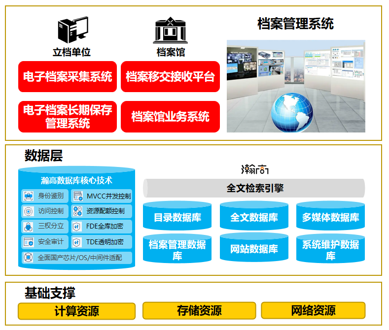 随着新型智慧城市建设的加速推进及新一代信息技术的广泛应用,档案工作环境、内容及存储方式等都发生着翻天覆地的变化,档案管理向数字化、智能化迈进成为现代社会发展的必然要求。如何将种类繁多且庞杂的档案充分整合并实现资源的有效利用,是当前档案管理建设的重中之重。在此背景下,瀚高数据库智慧档案管理解决方案应运而生。
