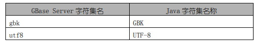 警告:在 GBase JDBC 中,不要执行“set names”来设置字符集,因为驱 动不会发现字符集已经改变,而是会继续使用在初始化连接设置时使用的字符 集。