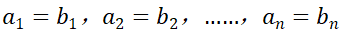 若两个向量的分量分别相等,则认为这两个向量是相等的向量。例如在n维空间内有A和B两个向量:
