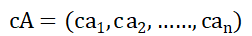 下图展示了纯量乘法的几何解释,使用实数c乘以一个向量A,cA为向量A的c倍,若c为负数,cA与向量A的方向相反。