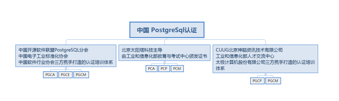 第二家由北京太阳塔科技主导,由工业和信息化部教育与考试中心颁发证书,分为PCA(初级)、PCP(中级)、PCM(高级) ,一般由讲师进行线下(周六、周末,全国各地巡回开展)为期2天的培训,分为机考 + 实验,PCM需要由主考官进行面试,讲师不定。官方公众号:PostgreSQL考试认证中心。