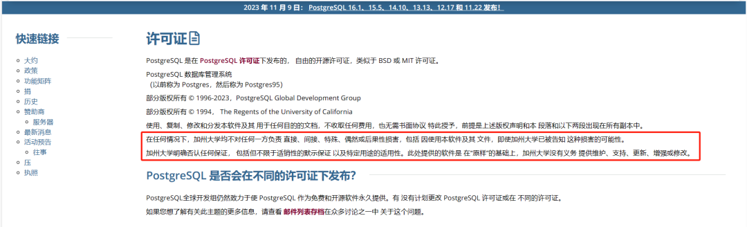 也就是说PG基本没有什么限制,你可以自由的把PG的源码拿来,重新包装,并用于商业。但是你的产品里要有上图里红框的描述,原文如下: