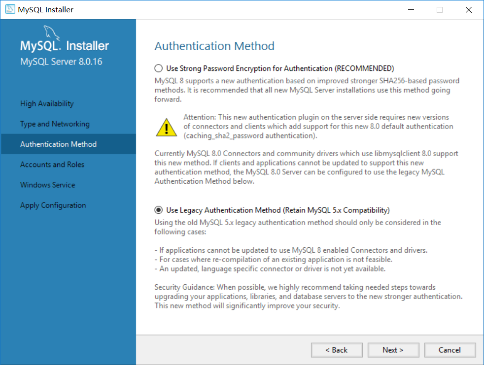 (4)出现图4-14所示的页面,要求配置数据库认证方式,设置密码强度。选择图4-14所示的认证方式。