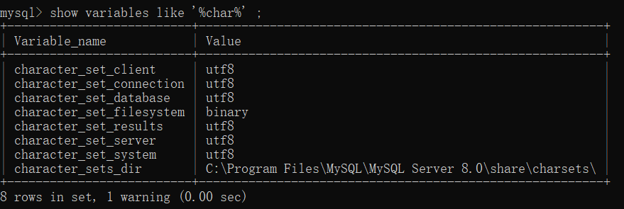 MySQL8.0系列版本中采用的默认字符集可能为utf8mb4,utf8mb4编码是utf8编码的超集,兼容utf8,但会占用较大的存储空间。本项目采用utf8字符集。