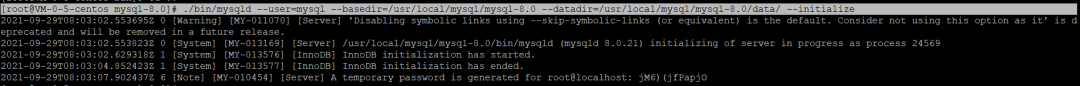 [root@host mysql-8.0]# ./bin/mysqld --user=mysql --basedir=/usr/local/mysql/mysql-8.0 --datadir=/usr/local/mysql/mysql-8.0/data/ --initialize