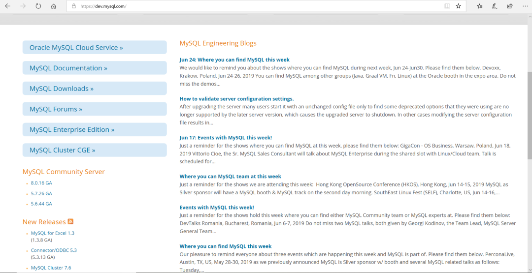 (1)进入MySQL官网,官网首页如图4-1所示。