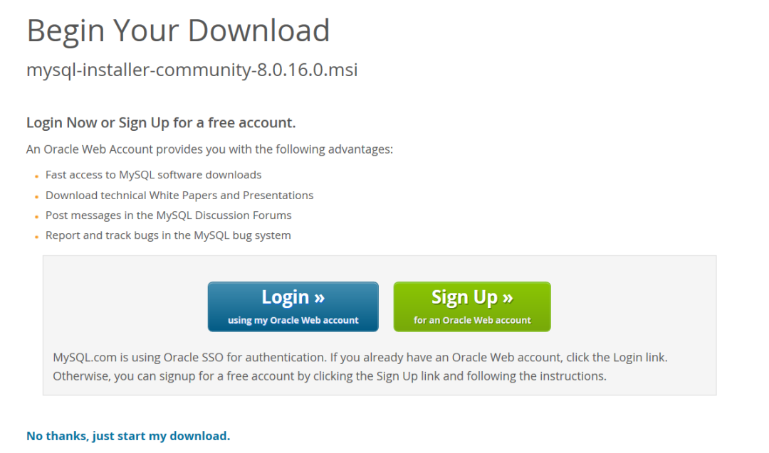 (5)下载之前会要求登录或注册账号。如果没有账号或不想注册账号,可以直接单击“No thanks just my download”这句话,意思是“不需要注册,直接下载就行”。