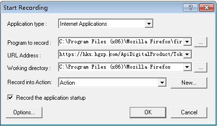选项配置完毕,单击【OK】按钮即可开始脚本录制。在脚本录制过程中,loadruner会自动启动浏览器,打开前面配置的URL页面,此时可以进行系统登录、浏览页面等操作,操作完成后,单击录制工具条的停止按钮即完成脚本录制。