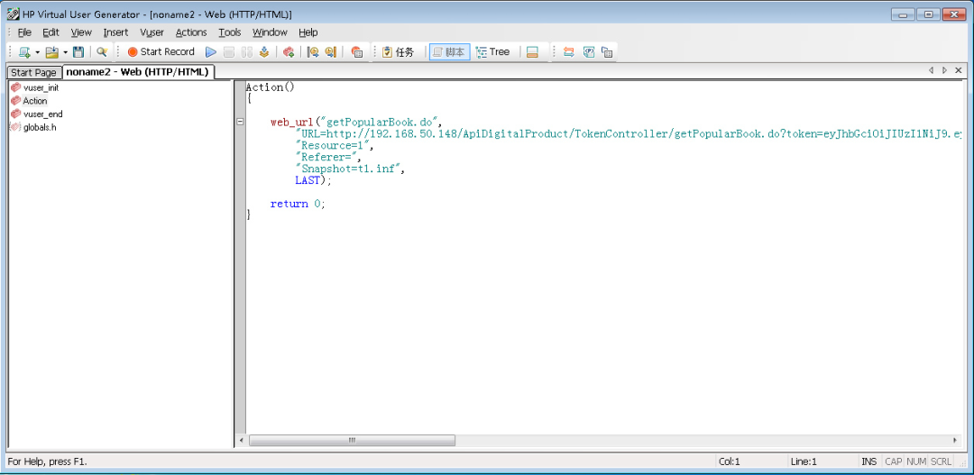 脚本录制完成后,loadruner会自动生成录制的脚本,并打开脚本操作窗口。