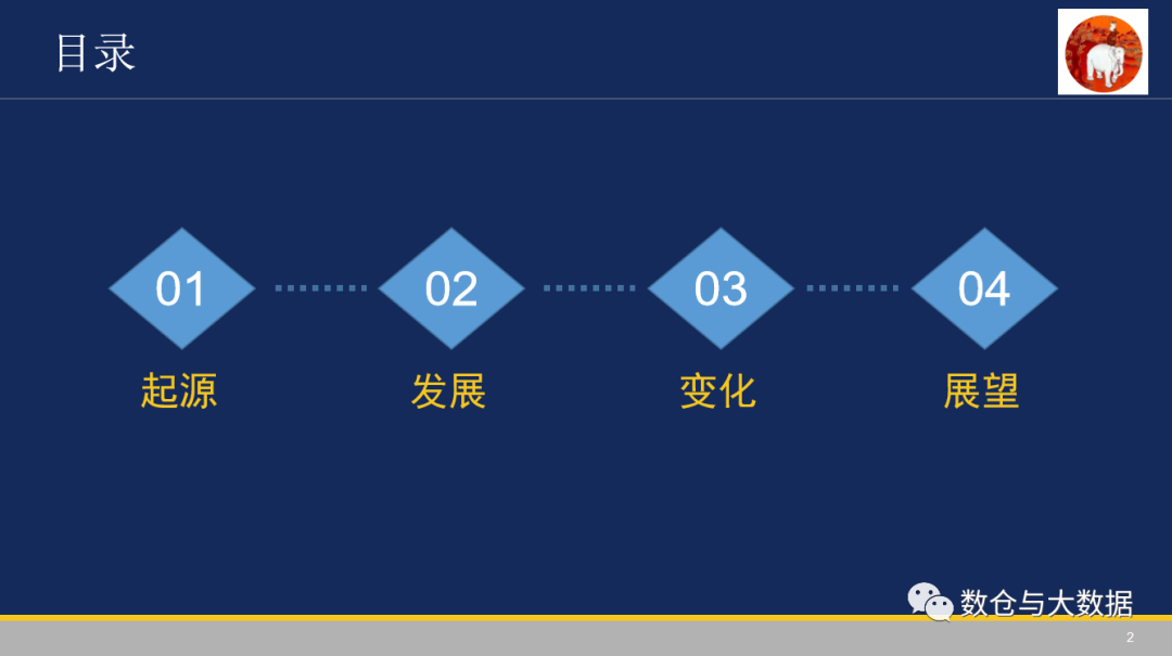 数仓的发展,我们主要介绍下数据仓库在我们国内的发展历程、在主要行业内的应用、我自己经历过的一些场景,以及当时产生的跟数据仓库相关的几个概念。