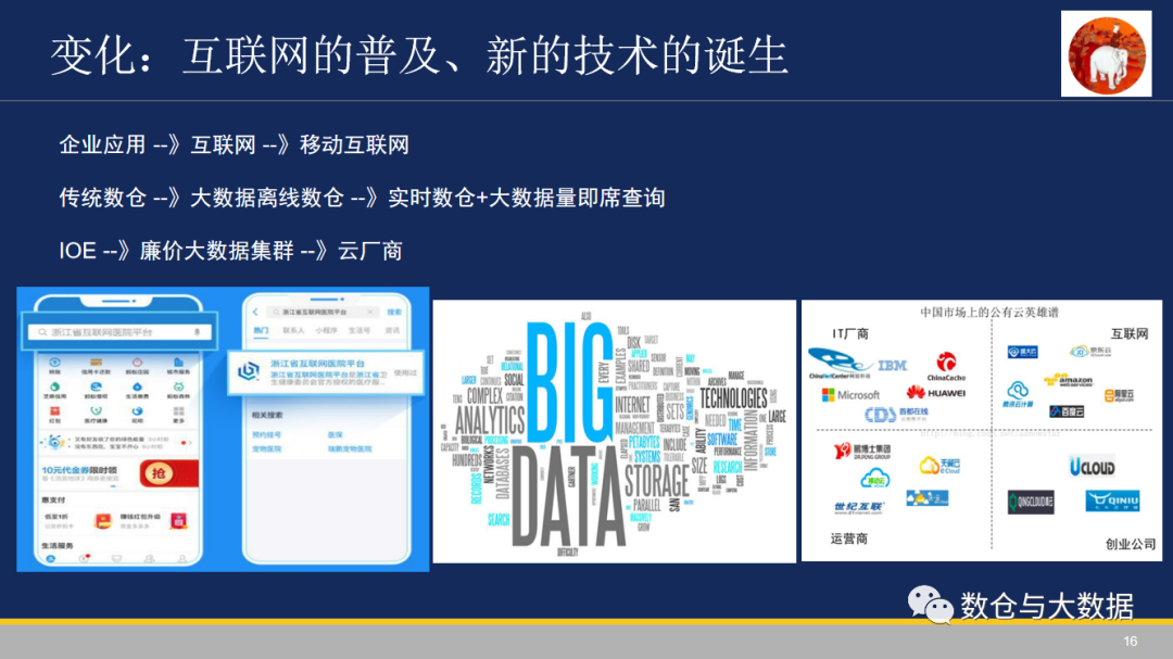 互联网、大数据、云计算,带来了新的业务形态、新的开发氛围。所有互联网企业都开始认识到数据的重要价值,都开始构建自己的数仓或者数据集市了。