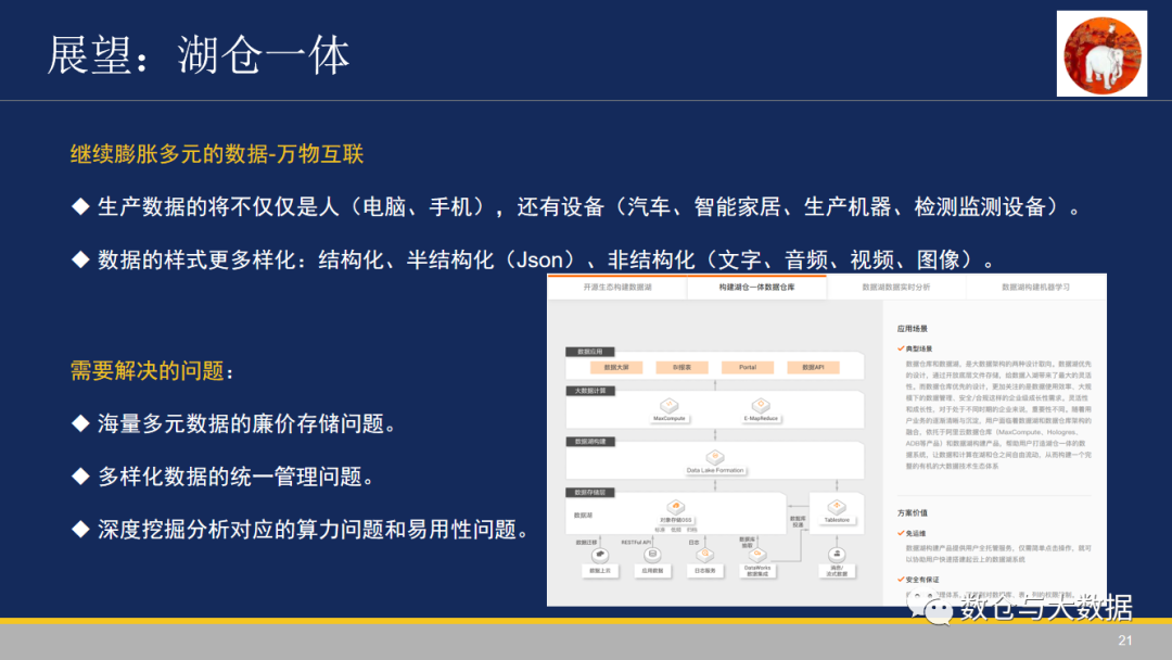 就像我 PPT 上总结的,数据湖还有很多问题没有解决。就算以后数据湖普及了,那么核心数据还是要进数据仓库的。因为数据湖里数据准确性很难保证,同时查询性能、对计算资源的消耗,数据仓库也是完败数据湖的。