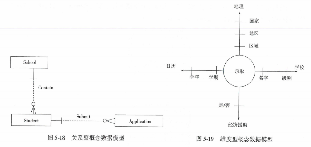 上图来源自 DAMA2.0 。左边的是关系型概念数据模型,右边的是维度型概念数据模型。