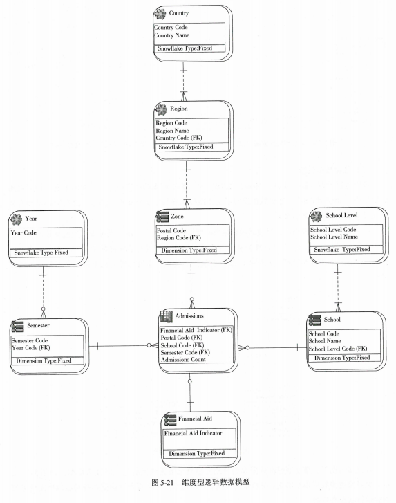 当维度模型在关系型数据库里实现就是我们大家常说的雪花模型或星座模型,反三范式或者逆规范化后就变成了星型模型
