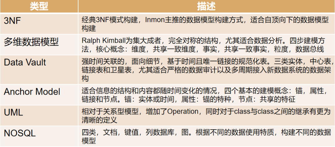 但由于这些建模方法都各有其局限性适用场景有限或者学习和理解难度较大,生产实践中用的不多,这里就不做介绍了,大家感兴趣的可以翻一下 DAMA 2.0 或者参考百度。