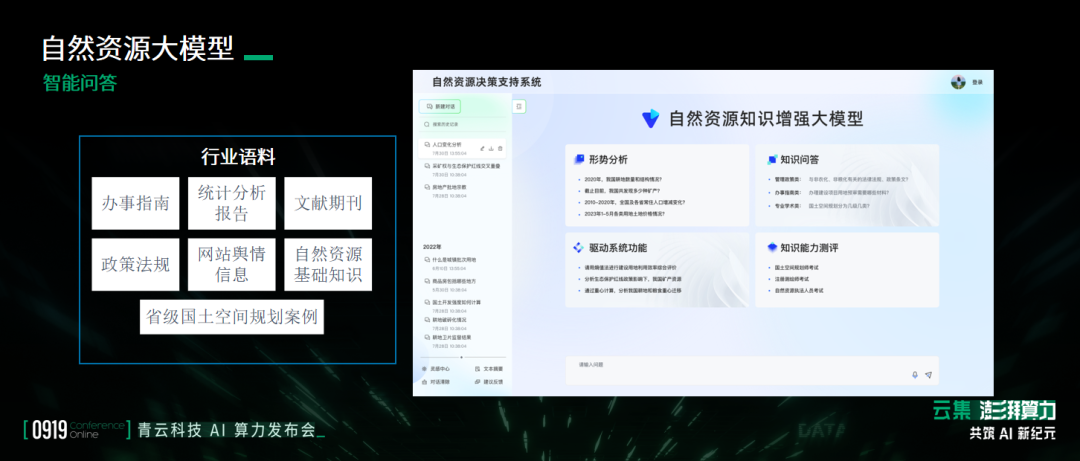 因此,青云科技 AI 算力发布会邀请了生态合作伙伴共同分享对于 AI 落地应用的技术与实践。北京数慧时空副总经理卢宇航以《自然资源多模态大模型赋能多元领域应用》为主题发表精彩演讲,分享了“长城”大模型支持自然资源领域多模态数据,打造“前店后厂”运营模式,用于大规模影像处理、农业金融、以地控税等多场景案例。以下为演讲全文,经整理: