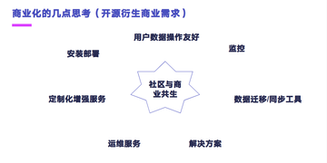 第二,灵活性比较强,任何人都可以定制化适合自己的场景的代码来修改,来满足自己的需求。然后商业也是因为基于开源的产品总会衍生出一些定制化的一些需求,还有更高要求的服务,因此参与者可以对外提供这些软件服务来获得商业回报。但是商业也可以进行反哺开源的产品,让开源产品成熟度更高,能适用更广更深的场景,进而更广更深的场景的话也能为商业带来更多潜在的一些商业回报。