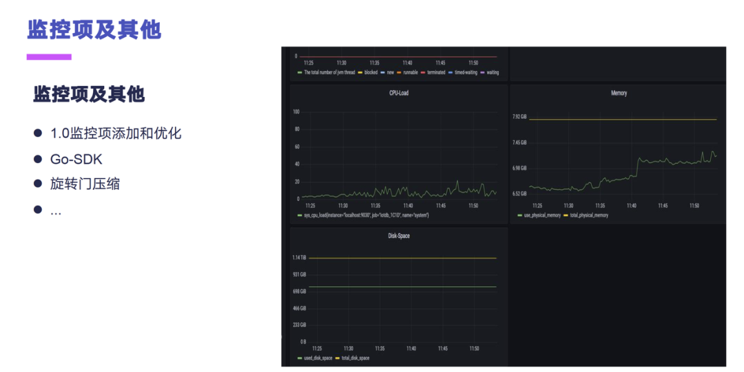 这个是我们做的关于监控项相关的,就是 1.0 版本的话它有一些监控项,我们做了一些监控项的一些添加,还有一些优化。在之前其实我们还参与过 Apache IoTDB Go-SDK 的一些开发,还有旋转门开发等等其他的一些开发。