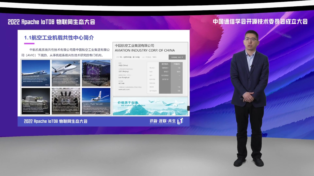 我们邀请到中航机载航空工业机载共性中心高级工程师王闯参加此次大会,并做主题演讲——《Apache IoTDB 在中航机载智能云制造系统的应用解决方案》。以下为内容全文。