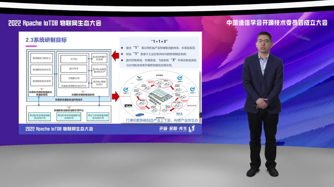 整个项目的研制目标是构建面向整个机载系统的智能云制造系统,以此来打通机载当前产业链的上下游,形成涵盖主机单位、机载系统的供应商、机载子系统的供应商、机载的工厂、包括一些下游的一些供应链的供应商合作伙伴,这样一个产业的新的生态。
