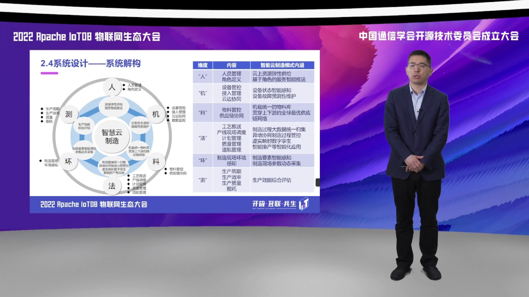 因此,我们提出了一种覆盖了人、机、料、法、环、测,六个维度的智慧云制造的一个新的模式。通过在这个六个维度的一些智能化的具体的应用赋能,来构建这样一个更优化、更智能、更高效、更协同的产业新模式。