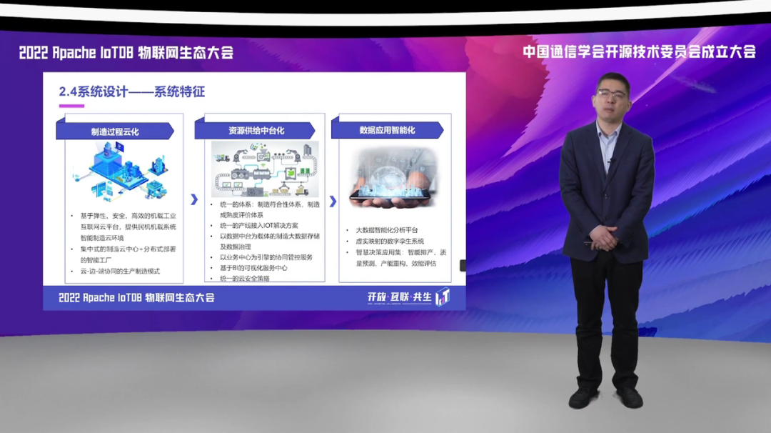 第三方面,通过大数据分析平台以数字孪生系统,来构建这样一个对于数据的智能化应用的服务,实现对于制造过程中从智慧排产、质量预测、产能重构等一些技术点上,提供一些智慧化的服务。