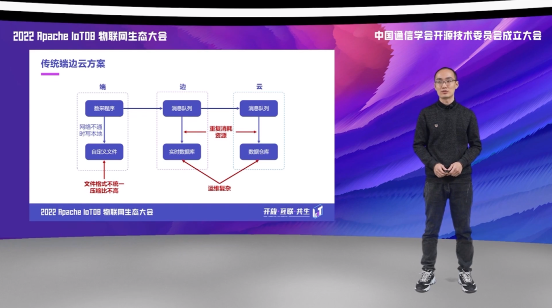 第二个问题就是我们可以看到在边侧和云侧分别部署了实时数据库以及数据仓库,这两个就是两个不同的系统,对于我们运维人员来说,其实带来了更大的复杂性。