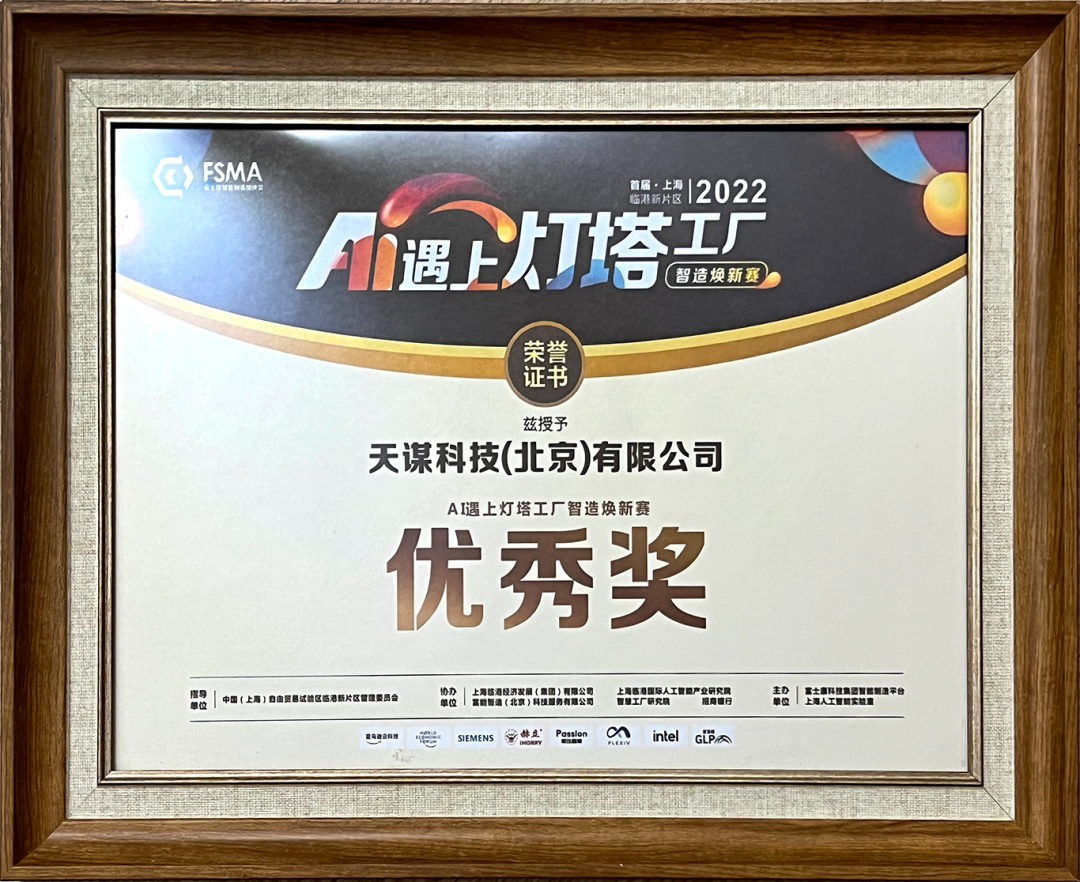 11月17日下午,2022年上海临港新片区“AI遇上灯塔工厂”智造焕新高峰论坛暨富士康智能制造加速营入营仪式通过线上直播的方式举办。大会为2022年上海“AI遇上灯塔工厂”智造焕新大赛的获奖企业颁奖,其中天谋科技(北京)有限公司获得AI遇上灯塔工厂智能焕新赛优秀奖。