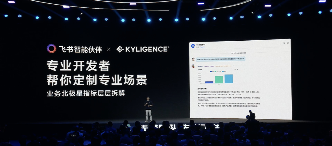 11 月 22 日,飞书在 2023 秋季飞书未来无限大会上正式发布了飞书智能伙伴。作为首批生态伙伴,基于 Kyligence 智能一站式指标平台实现的 AI 数智参谋也正式亮相。这是继 11 月 21 日 Kyligence 产品发布会后,Kyligence 在数据驱动决策智能领域快速前进的重要一步。
