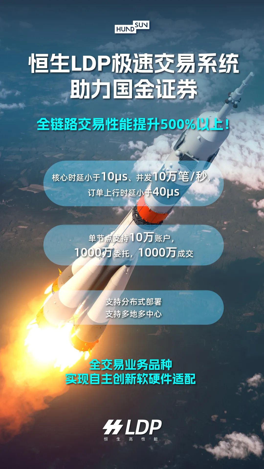 从2022年起,国金证券携手恒生,合作搭建了LDP极速交易系统。2023年,双方深化合作,在原有基础上扩展了LDP两融极速交易系统、LDP期权极速交易系统、LDP极速风控系统,实现了全交易业务的自主创新合作!