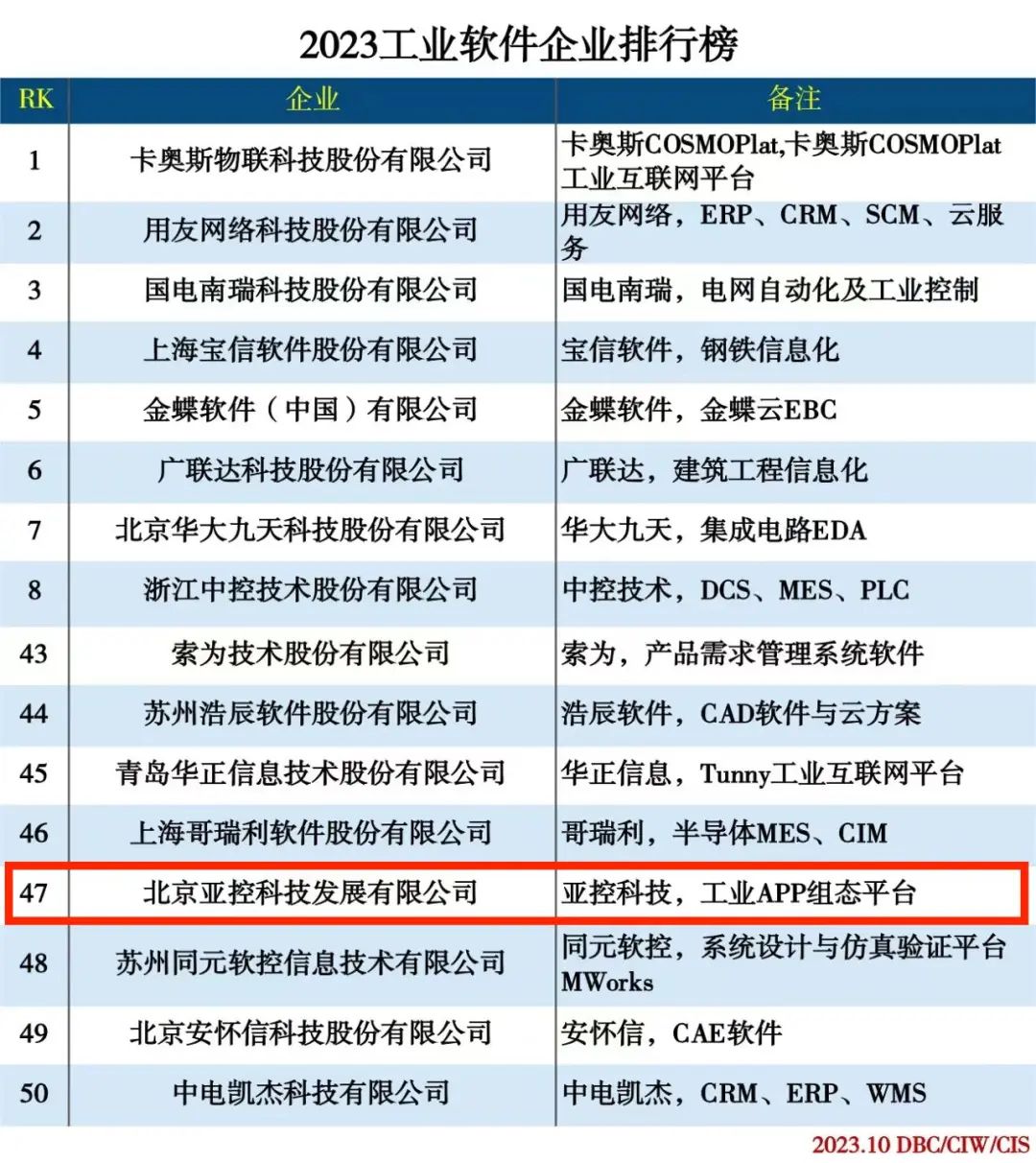 ★亚控科技上榜“2023中国工业软件企业TOP50”★