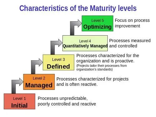 能力成熟度模型对它的影响远不止这5个阶段,但它真正重要的是它被使用了,至少有很多人认为它可以作为在特定空间评估过程成熟度的一种方法。