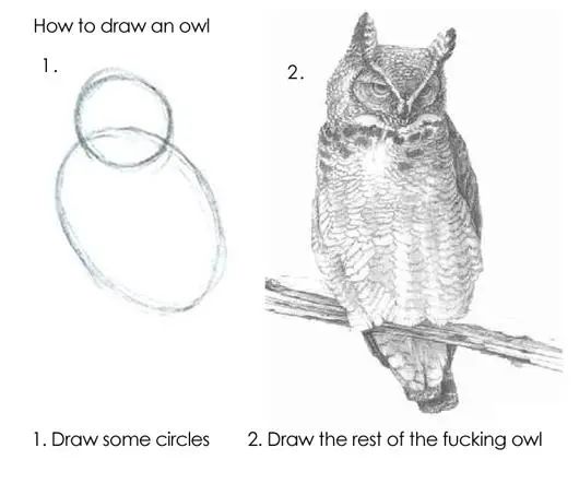 很多现有的bpmm告诉你,你应该有一个漂亮的工作系统,但不要涉及到它所需要的实际成长过程。它让我想起了红色的subreddit:Rest of the fucking owl,灵感来自下面著名的图片。