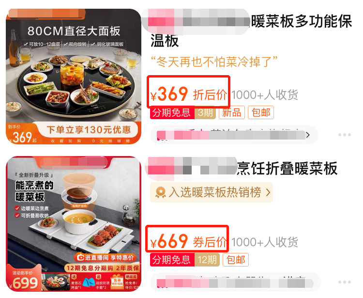 那段时间,暖菜板这类产品在网上很火,很多人买,大家看到的普遍要360-660元。