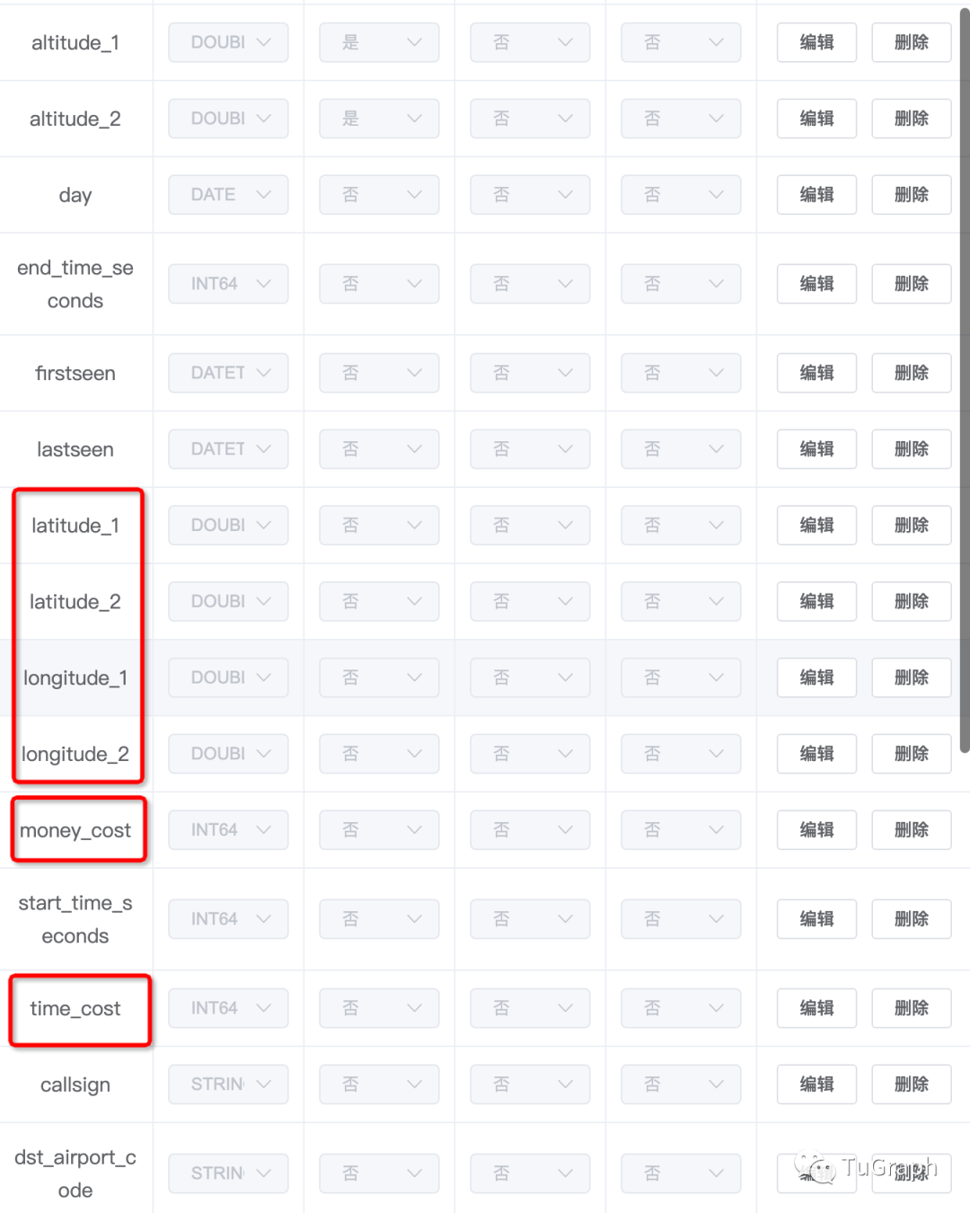 用于计算的边类型及重要属性: