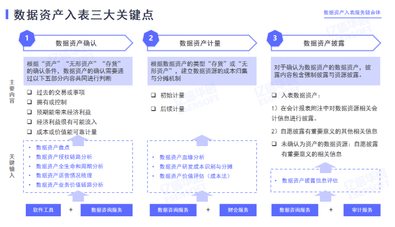 数据资产入表的三大关键点一个是数据资产的确认,二是数据的资产计量,三是数据资产的披露。